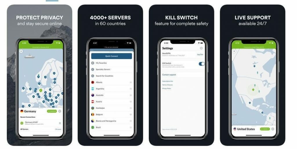 يعد Nord VPN أحد افضل برنامج vpn للايفون المجانية لأجهزة iPhone و iPad ، وهو متاح للتجربة لمدة سبعة أيام. يمكنك من تصفح الإنترنت بسرعه وثابت مع ميزة التشفير. دعونا نلقي نظرة على ميزات Nord VPN:
