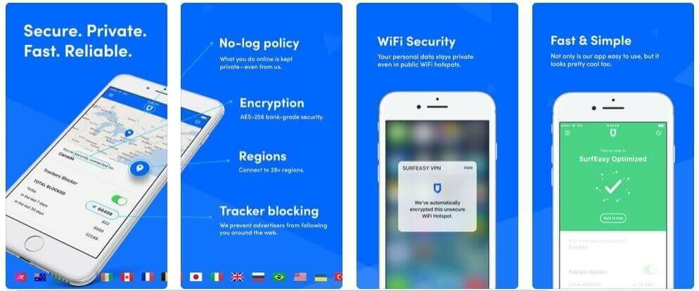 تعد Surf Easy VPN واحدة من أفضل تطبيقات VPN المجانية لأجهزة iPad و iPhone والتي لديها سياسة صارمة لعدم الاحتفاظ بالسجلات. لذلك ، فإن جميع أنشطتك عبر الإنترنت آمنة ومشفرة. دعنا نلقي نظرة على ميزات VPN من Surf Easy: