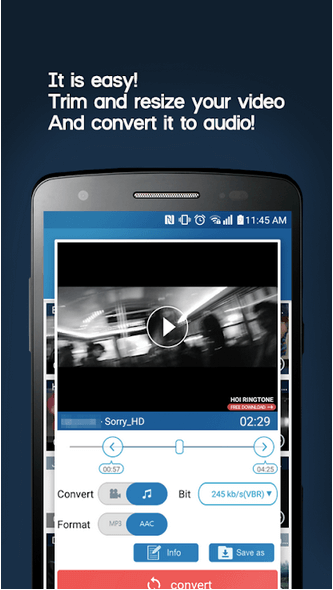 استخدم Video MP3 Converter لتحويل ملفات الفيديو وتغيير حجمها وتقليمها دون عناء. يمكنك أيضًا استخدام إحدى ميزاته لقص مقاطع الفيديو لإنشاء نغمات رنين مثيرة للاهتمام. يمكنك استخدام هذا الحل المتقدم لتحويل جميع تنسيقات ملفات الفيديو على الفور.
