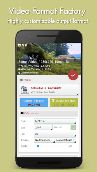 هو واحد من أسرع محولات وضاغط الفيديو المتاحة لنظام Android. وهو يدعم تقريبًا جميع تنسيقات الفيديو مثل MP4 و AVI و MKV و MPEG و MOV والمزيد. يمكنك استخدام هذه الأداة الذكية لضغط وتحويل وتغيير دقة الفيديو وتعديل معدل البت الصوتي لملف الفيديو وغير ذلك الكثير. يوفر نتائج عالية الجودة في الحجم الأمثل.